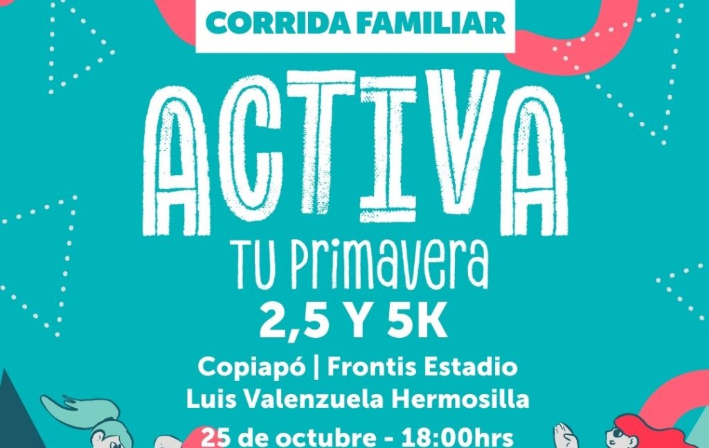 El próximo sábado 25 de octubre, el frontis del Estadio Luis Valenzuela Hermosilla será el punto de encuentro de una fiesta deportiva que unirá a la comunidad atacameña con recorridos de 2.5K y 5K, además de actividades especiales para la primera infancia.