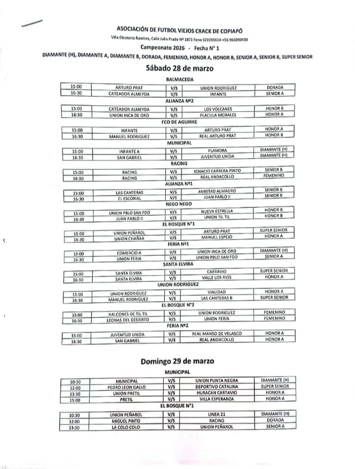 El certamen, considerado uno de los más tradicionales del fútbol amateur en la comuna, se disputará en diversas canchas de Copiapó, donde los equipos buscarán comenzar con el pie derecho en su lucha por alcanzar el anhelado trofeo de campeón.